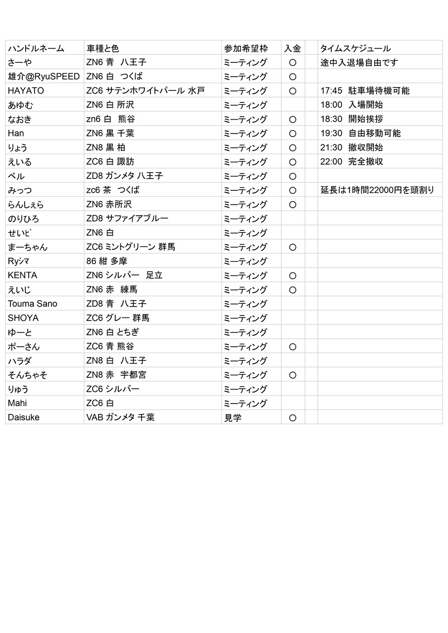 ミーティング参加 1台3000円